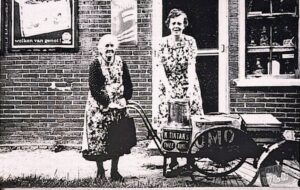 De Smidshornerweg te Niekerk, omstreeks 1943. Dit winkeltje heeft gestaan, waar nu aan deze weg 2 en 4a zijn gevestigd. Aan de oostkant woonde Rendert